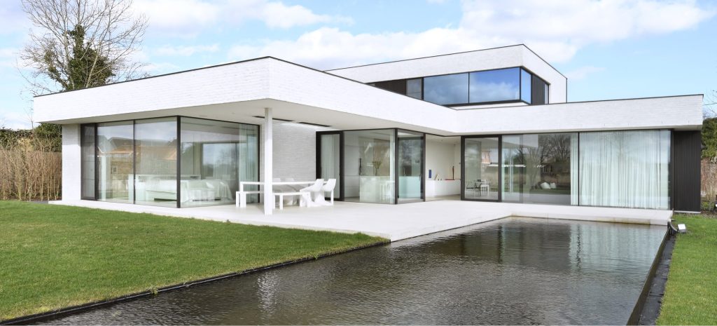 Chaque fenêtre et porte participe à l’harmonie de l’esthétique moderne et sereine de la maison.